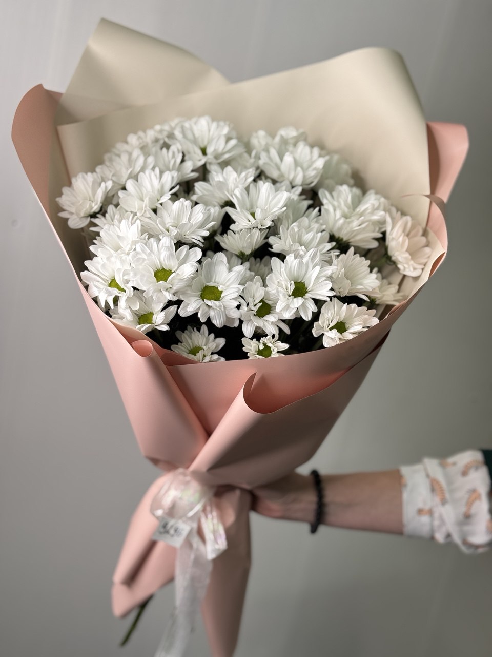 Изящное сочетание красоты и свежести в нежном букете из хризантем сорта Ромашка! Ромашковые хризантемы выглядят необычно и создают пышный букет. Белые хризантемы символизируют чистоту, невинность и светлые чувства. Идеальный подарок для тех, кого вы цените и любите!